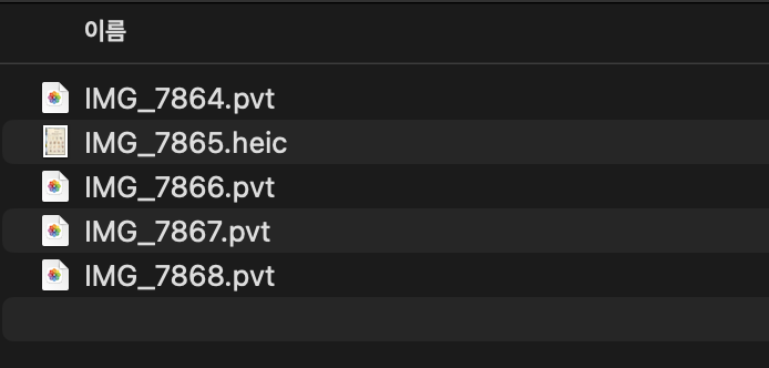 heic는 이제는 너무 익숙한 확장자가 되었지만 pvt라는 파일이 파인더에 보였다.