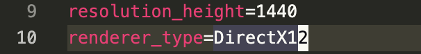 이 상태로 실행하면 제대로 실행이 되지 않아서 renderer_type을 DirectX12로 위 스샷처럼 고쳐준다.